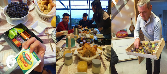 | 回信中屋主說可以但希望我們19:30就開動(一般法國晚餐20:00開動的話都算早,而我們則是對能快點吃到晚餐求之不得啊~)。 女主人負責料理、男主人負責端菜介紹;得知這間屋子才80歲而已,是我們此趟住到最年輕的;先生來自加拿大法語區太太是這區的當地人,一直住在加拿大到數年前才全家搬回法國並經營民宿生意。 |